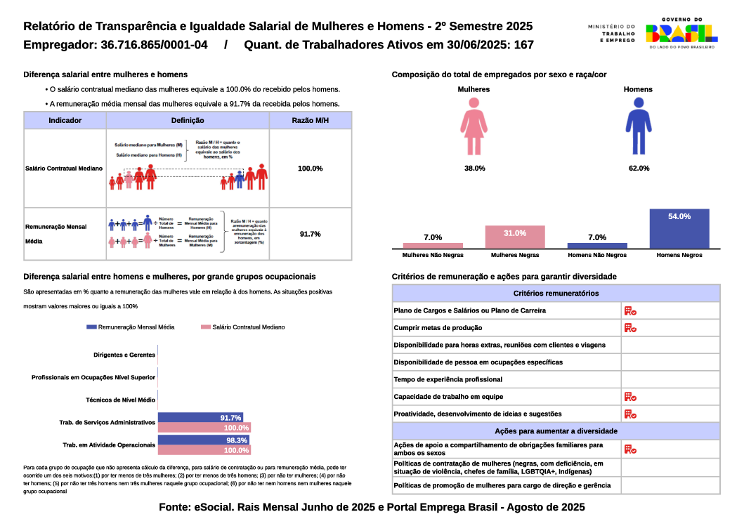 Relatório de Transparência e igualdade salarial de mulheres e homens